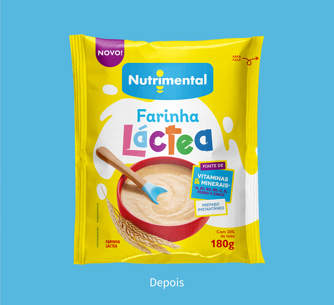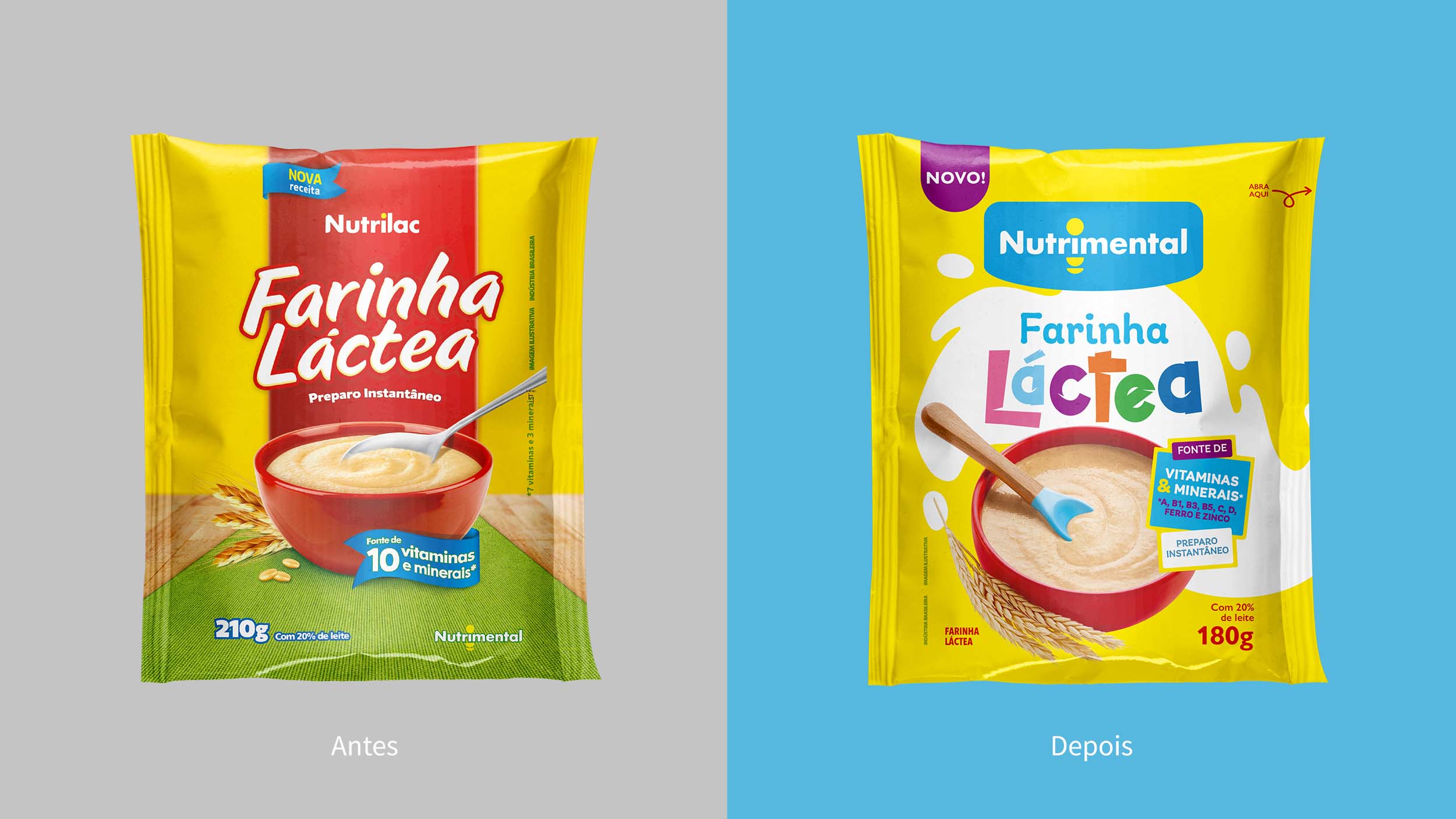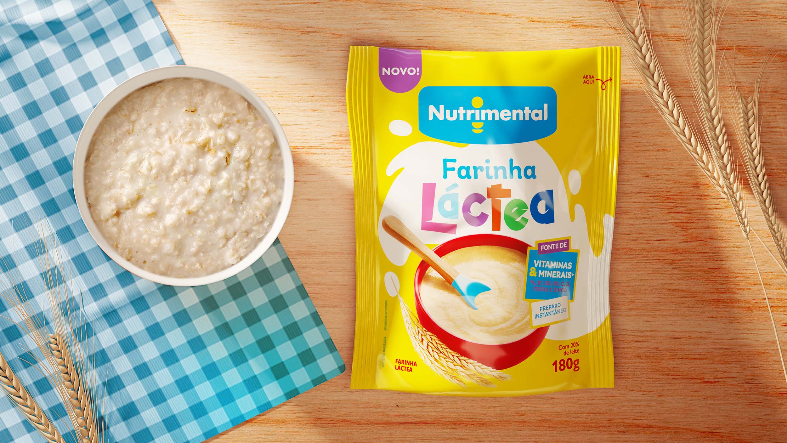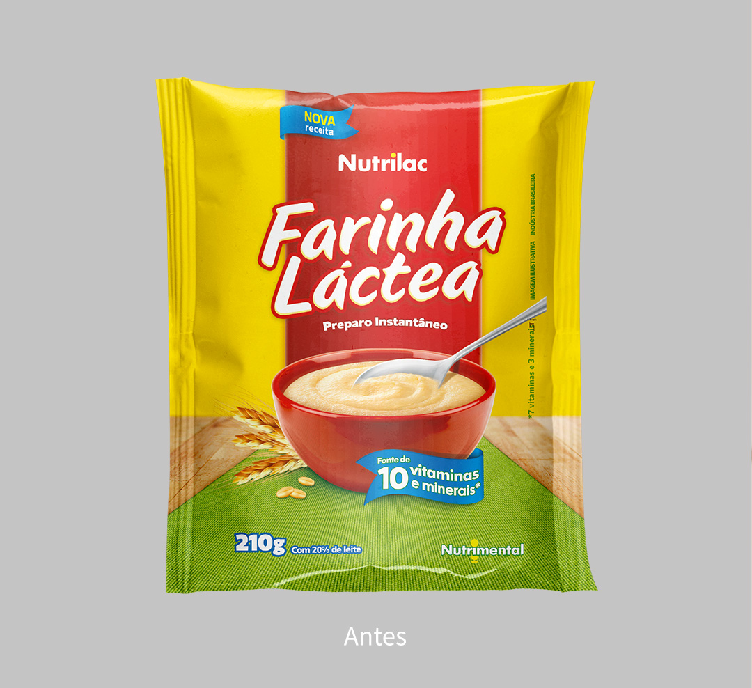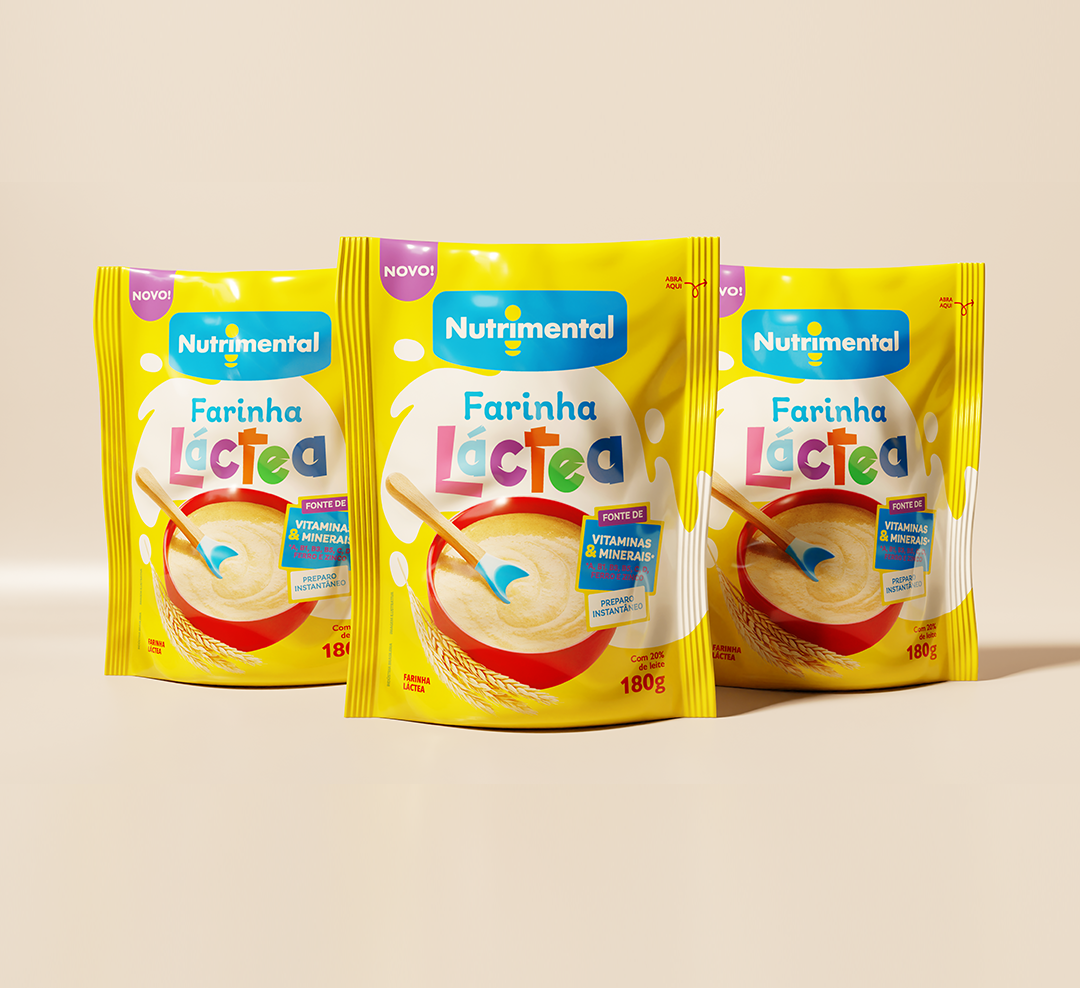 Redesign de embalagens de Farinha Láctea para Nutrimental, empresa paranaense fundada em 1968, que produz amplo portfolio de alimentos industrializados incluindo as marcas Nutry, Nutribom, Nutrilon e Nutrilac.